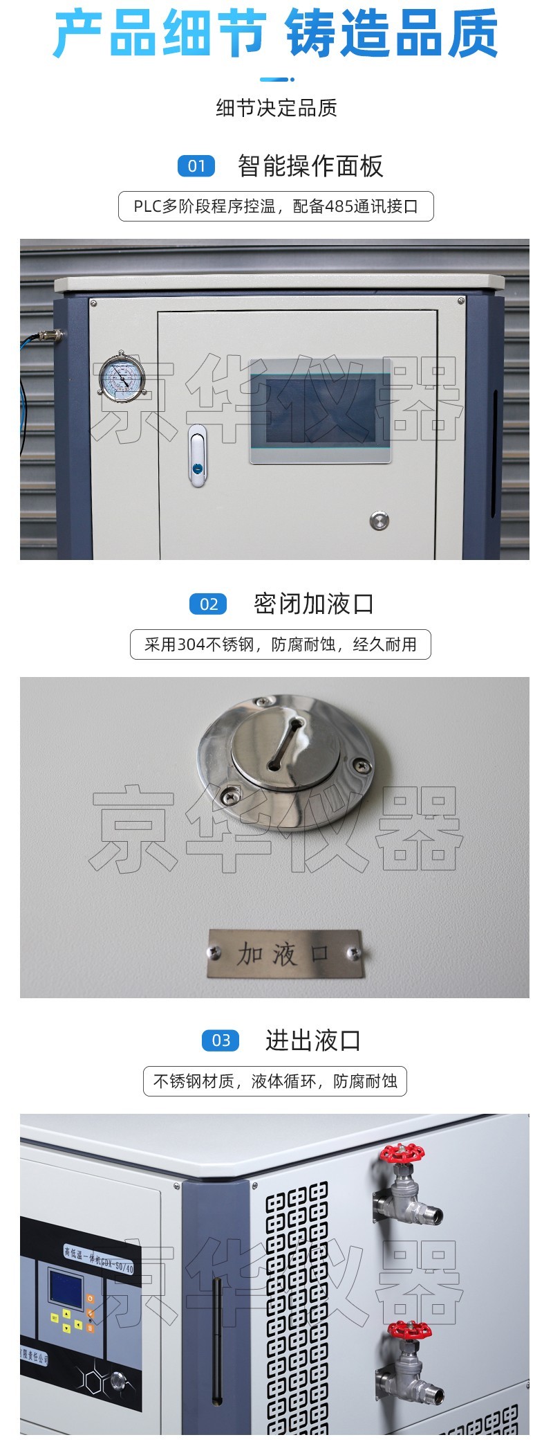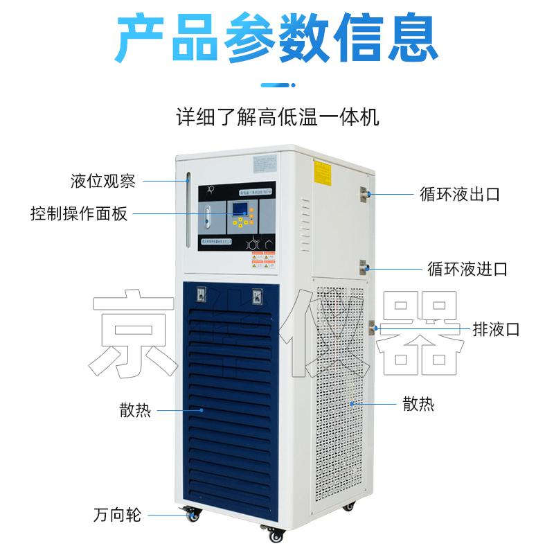 密閉型高低溫一體機整個系統的液體循環是密閉的,系統帶有膨脹容器(儲液槽),膨脹容器和液體循環是絕熱的,并不參與液體循環,只是機械的連接,不管液體循環的溫度是高溫還是低溫,膨脹容器中的介質低于60度。整個液體循環是密閉的系統,低溫時沒有水汽的吸收,高溫時沒有油霧的產生,介質可以有很廣的工作溫度。